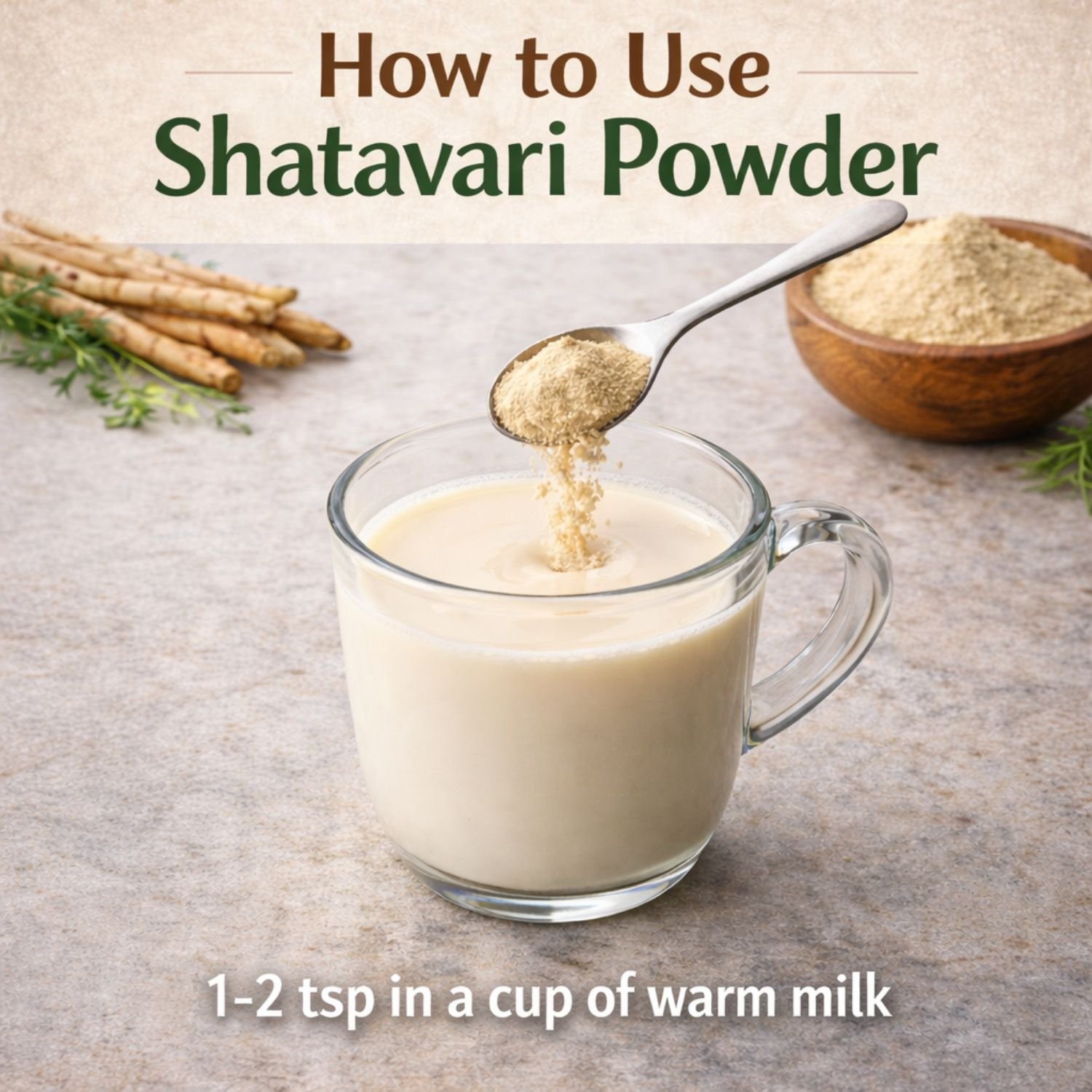 Mix ½–1 tsp with warm milk, water, or herbal tea once daily.